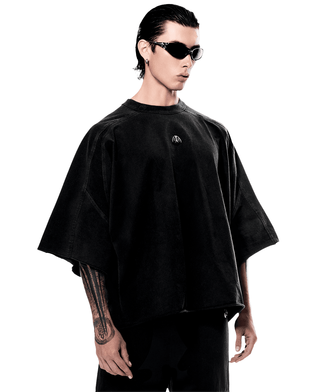 MADE FOR THE HEADLINERS. WEIGHTED WITH INTENT. BUILT TO CARRY PRESENCE. COLD METAL AGAINST SOFT COTTON WEAVE. ORDER AND DAMAGE IN BALANCE.